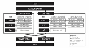A third limitation resulted from the stringent COVID-regulations which were in effect during testing. This study was conducted at three separate test locations over four different days. While this allowed for the recruitment and assessment of more participants, some concessions to standardisation of environments were necessary. A specific example was the separation of conventional and digital test areas. Only at one site were the researchers able to completely separate both conditions by utilizing two separate rooms. At the other locations, the researchers had to construct a separating element themselves, allowing for the visual separation of both test areas. Additionally, inter-rater reliability was not investigated during this study, yet has been previously reported to be high for the conventional test condition of both the OBBT and LJT with some caution regarding variations in the OBBT.29–32
