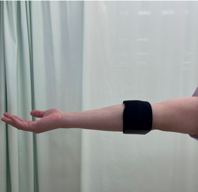 MEVT, the main outcome, was measured using an IMU (Pulse Throw, Driveline Baseball, WA, USA) device. The device was placed 5 cm distal to the medial epicondyle of the humerus (Figure 2).11 The average value of the MEVT in each participant when 100 balls were thrown was calculated. In addition, according to the method described by Aguinaldo et al.12 the measured MEVT was divided by height (m) and body mass (kg) to exclude the effect of body size, and the result was termed normalized MEVT (nMEVT).