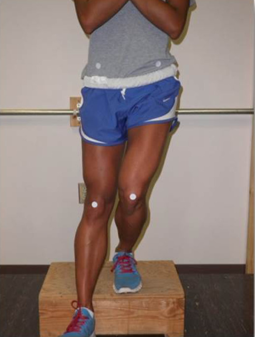 While perhaps not as effective at demonstrating abnormal coronal plane hip and knee kinematics as the single leg squat, a timed, maximum repetition single leg step-down (SLSD) test has recently been advocated for lower extremity injury risk and RTP screening.18,34 This test consists of a subject stepping down from a raised platform 6-8 inches high in a controlled manner, for a maximum number of repetitions within a defined time period (usually 30 or 60 seconds; Figure 7).