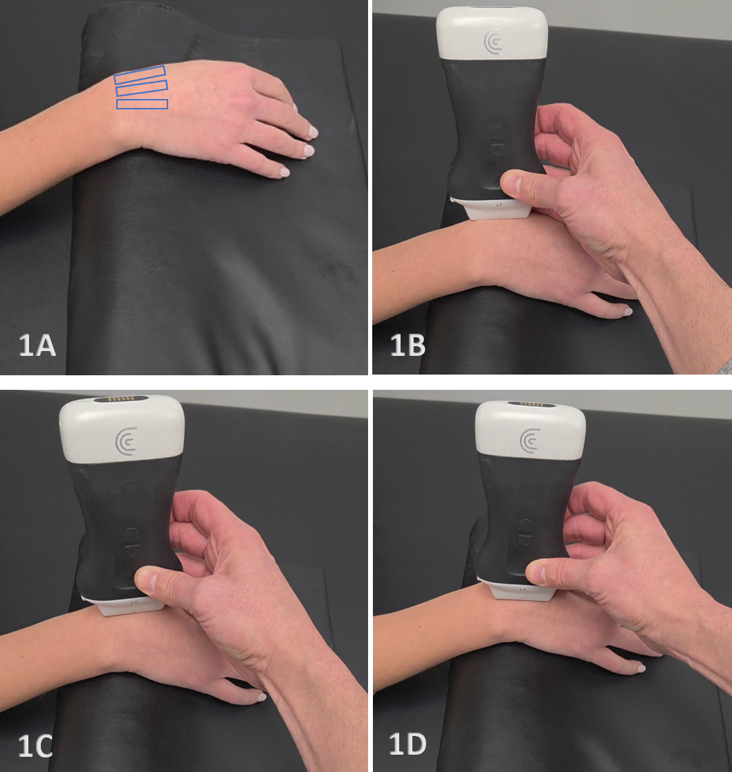 - Transducer Type: Because of the superficial nature of the wrist structures, a standard high-frequency, linear array transducer is normally used. In some instances, the L-shaped, hockey stick-type transducer may be required.