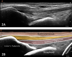 Real-Time Imaging: Structures such as the radiocarpal joint and the scapholunate ligament of the dorsal wrist can be evaluated with MSKUS.