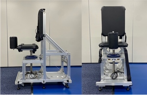 Trunk rotation torque was measured isometrically at a trunk rotation angle of 0° using a custom-manufactured trunk rotation dynamometer (SANKA Co., Niigata, Japan) (Figure 1), developed in consultation with the research group, and a strain amplifier (TSA-210, SANKA Co., Niigata, Japan).18 All trunk rotation trials were performed as maximal voluntary isometric efforts. Two maximal-effort trials were conducted for each condition, and the trial yielding the greater torque value was used for analysis. Prior to testing, participants completed a standardized warm-up and familiarization protocol. Only non-dominant side rotation was performed to minimize fatigue and learning effects due to potential left–right differences in rotational strength.18 The non-dominant side was defined based on self-reported hand dominance (i.e., the hand used for writing), and trunk rotation was performed toward the side opposite the dominant hand. Each 5-second trial, initiated by the experimenter’s cue, included a 2-second ramp-up phase and a 3-second maintenance phase. To prevent compensatory movements, belts securing the thorax, pelvis, and thighs were adjusted to each participant’s body size. The experimenter confirmed that the pelvis was in a neutral position prior to each trial using visual inspection, restricting major trunk posture changes, although small pelvic tilts could not be entirely prevented. Standardized instructions were provided to minimize compensatory motion.